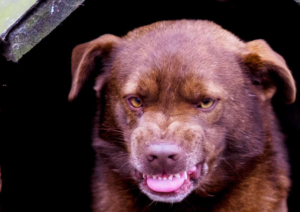 Zeigt ein Hund dieses Verhalten ohne eine erkennbare Verteidigung einer Ressource oder seines Nachwuchses, ist der Auslöser wahrscheinlich Angst. Angst ist leider sehr verbreitet bei Hunden, was nicht verwunderlich ist, wenn man sich einmal anschaut, wie oft sie Gewalt erfahren, in Form von Leinenrucken oder anderen körperlichen Strafen. Aber auch verbale Einschüchterungen führen dazu, dass der Hund mehr und mehr verunsichert und sich möglicherweise zu einem Angsthund entwickelt. Jedes Mal, wenn wir den Hund stimmlich grob zurechtstauchen, tun wir nichts anderes, als der Hund auf dem Foto: wir drohen. (Ein gut erzogener Hund ist häufig nichts anderes, als ein gut EINGESCHÜCHTERTER Hund!)